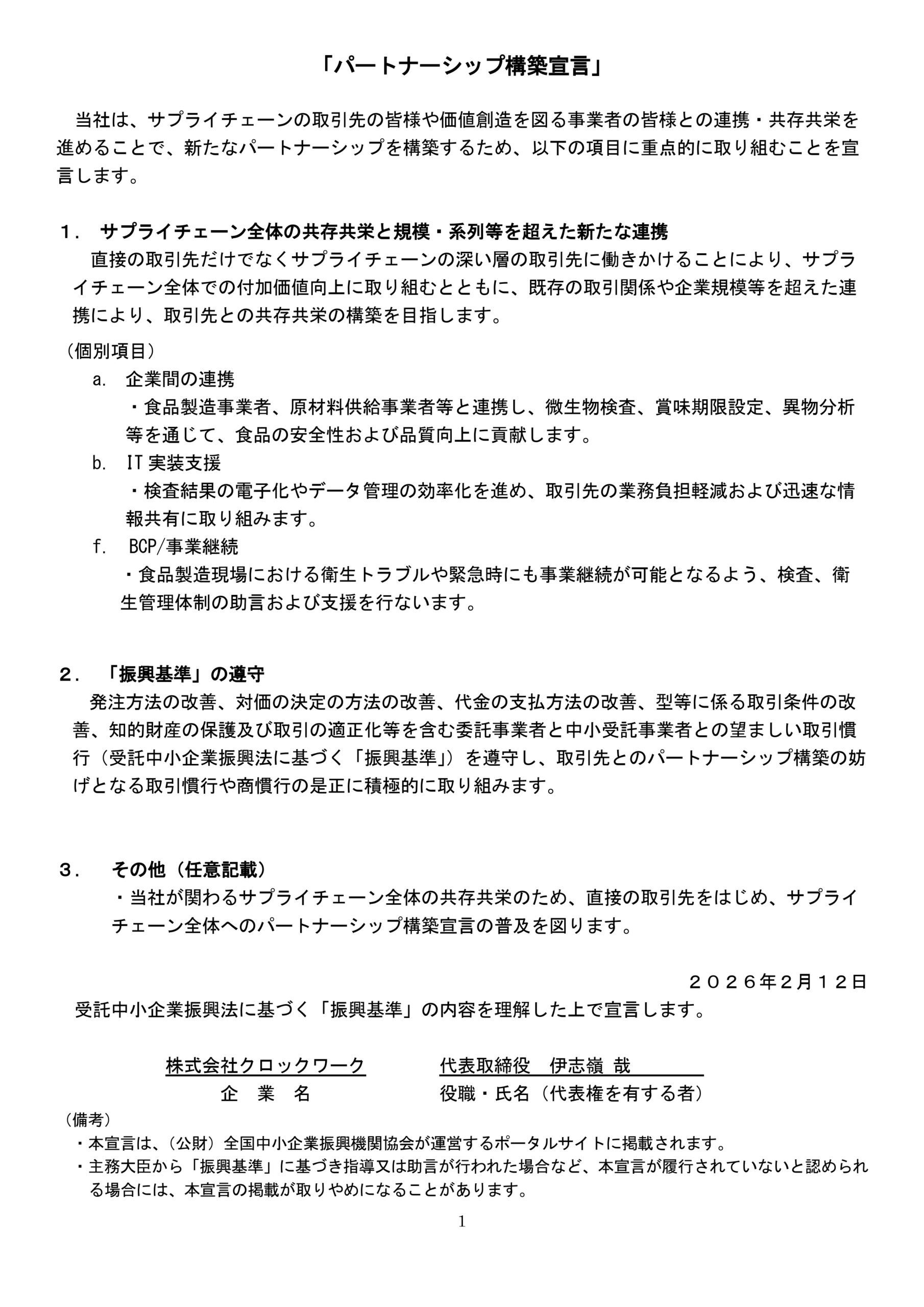 当社は「パートナーシップ構築宣言」企業です。